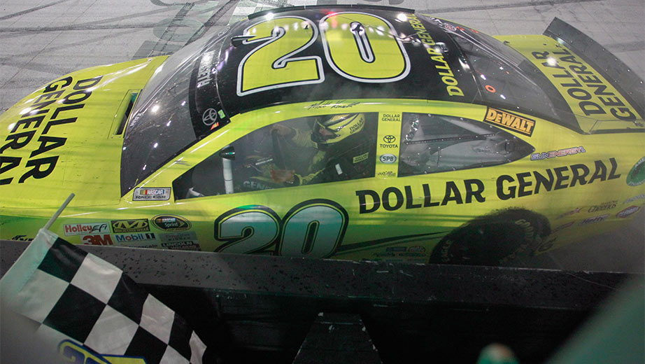 The race didn’t resume for another seven hours. Rain started falling after the caution came out, and for hours the teams sat, waiting for the rain to cease. It finally stopped, right about when people where finishing dinner. Before the caution, driver Denny Hamlin suffered a neck spasm. He sat out the remainder of the race, and was replaced by Truck Series driver Eric Jones.