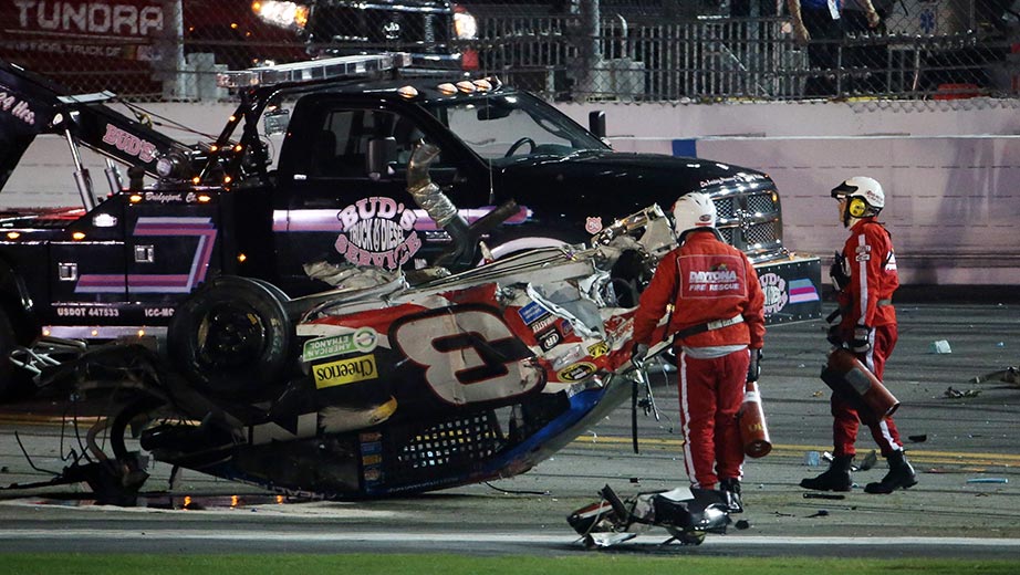 However, the night wasn’t destined to be remembered for his win. As the pack crossed the finish line Kevin Harvick accidentally spun Hamlin, who slid into traffic, wrecking almost every car in the field. As Denny slid into traffic, he slammed the number 3 of Austin Dillon. Dillon flew int the air, over the tops of at least 2 cars, and slammed the catch fence, ripping it to pieces. Dillon then landed on his roof and was slammed by Brad Keslowski’s no. 2 car.