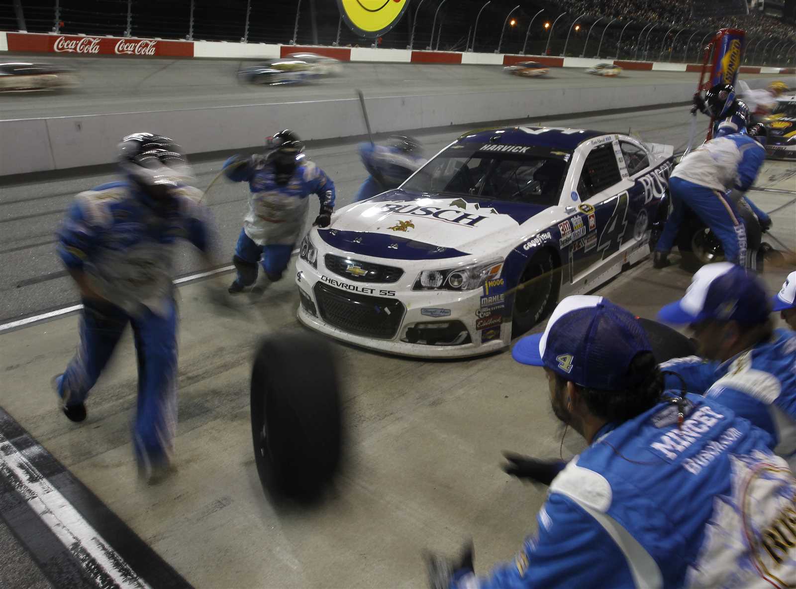 The race continued, and race leader encountered a familiar problem: slow pit stops. Again and again, Harvick’s crew lost spots on pit road. Harvick did his best to make them up on the track, but the major hit came on lap 283, when an air gun broke on a pit stop, and he dropped from 1st to 12th.