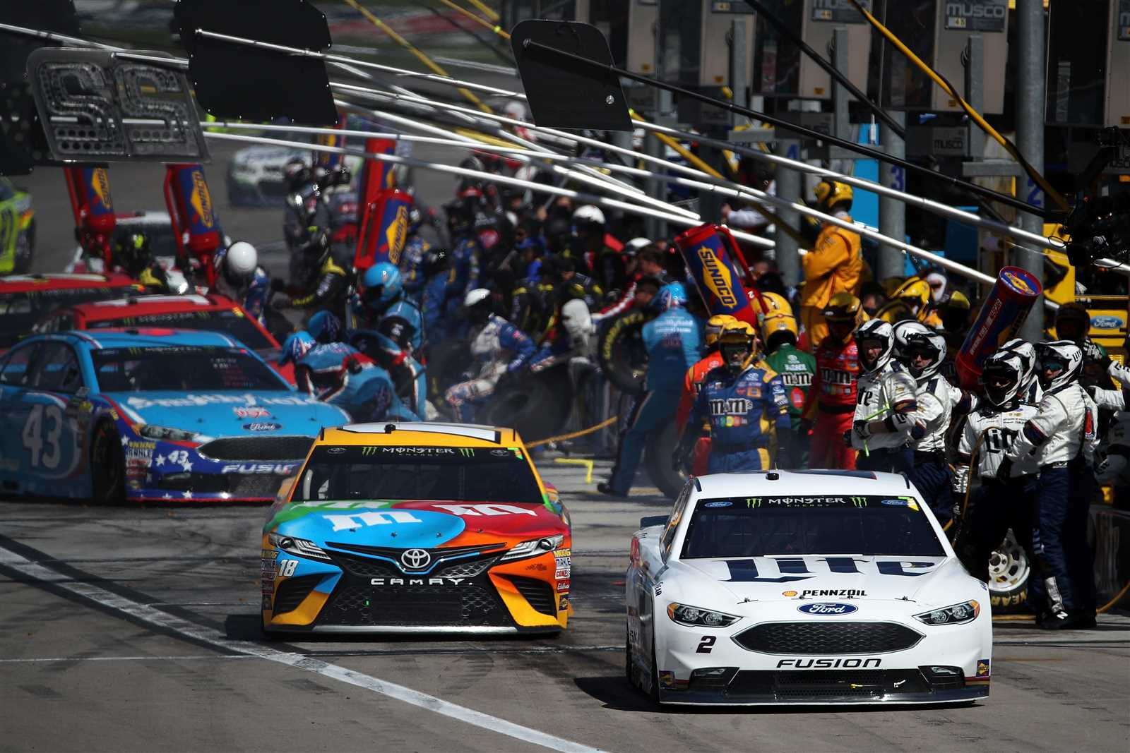 Ironically, Truex’s good fortune wasn’t the biggest story of the day. As drivers scrambled for every position possible, Kyle Busch and Joey Logano battled for the 4th position. In the final corner, Busch went high while Logano went low. Busch appeared to have the advantage, but Logano went up the track and hit Busch sending him spinning. The result was fourth for Logano, and 22nd for Busch.